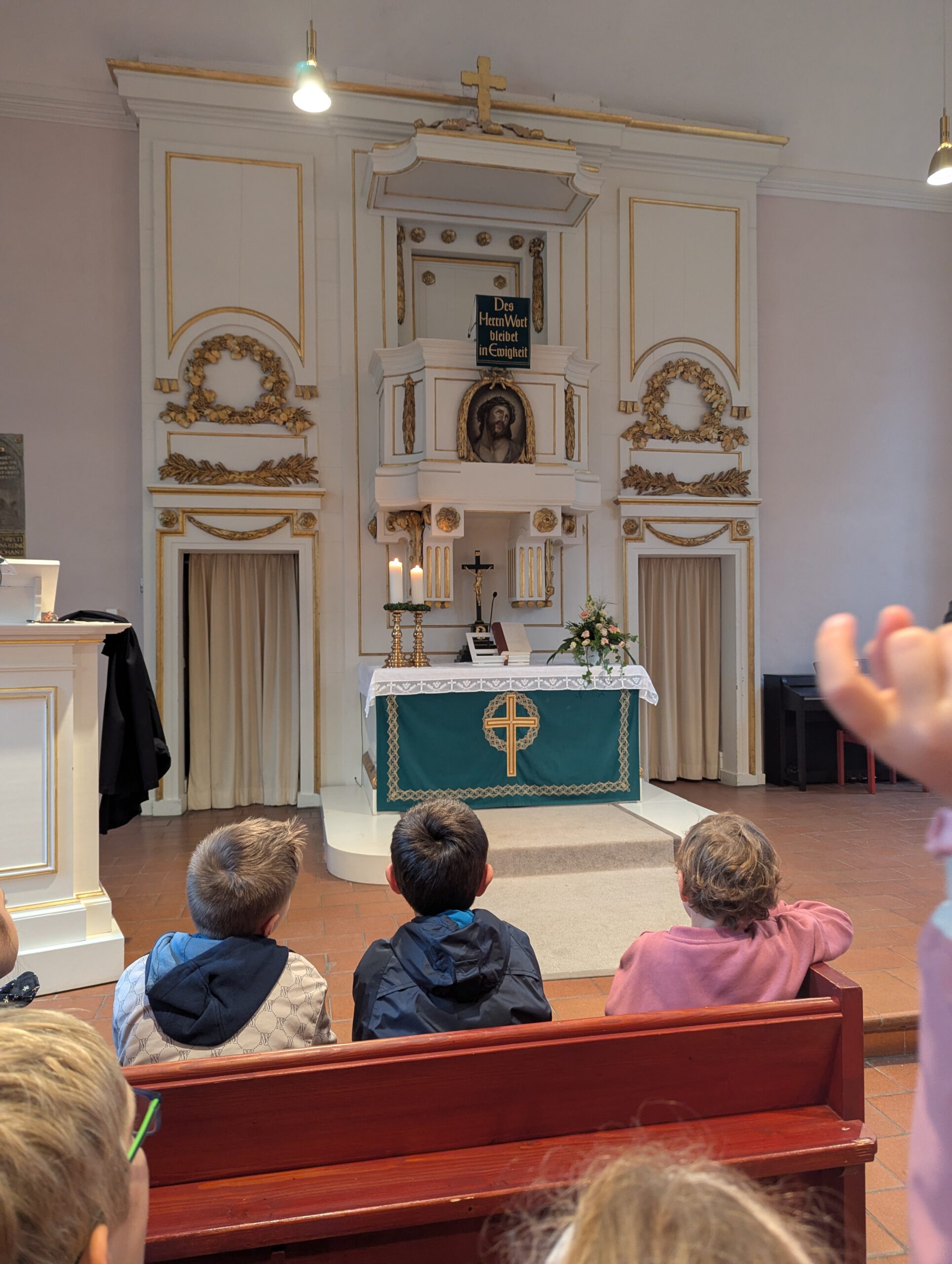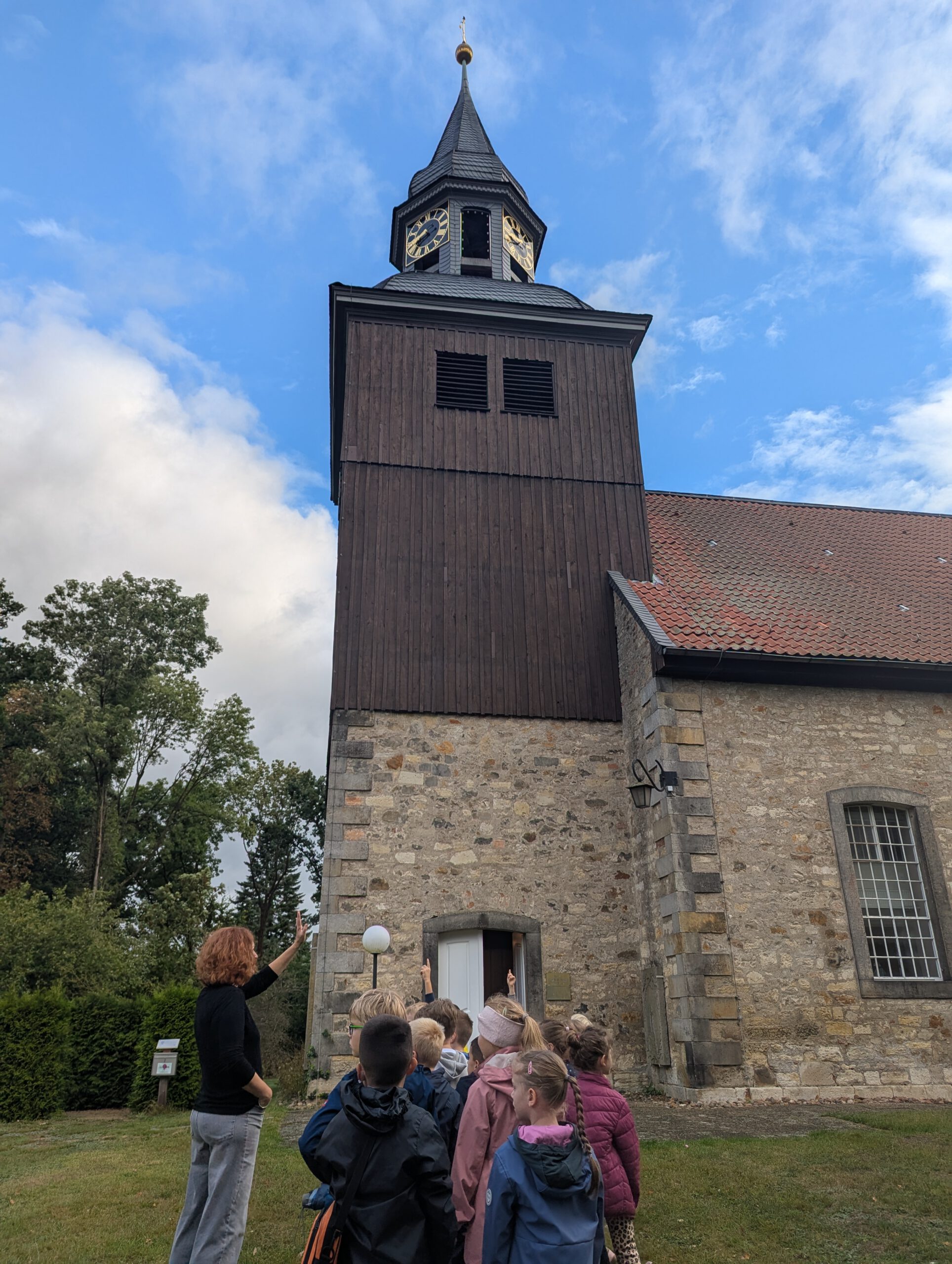 Im September unternahm unser zweiter Jahrgang einen aufregenden Ausflug zur Kirche in Meinersen. Im Rahmen unserer aktuellen Kircheneinheit im Religionsunterricht hatten die Schüler die Möglichkeit, das Gotteshaus im Detail zu erkunden und dabei alle Sinne einzusetzen. Herr und Frau Flanz nahmen sich viel Zeit, um kindgerecht und ausführlich viele spannende Informationen über die Kirche, ihre Geschichte und ihre Besonderheiten zu vermitteln. Bereits beim Betreten des Geländes konnten die Kinder die besondere Atmosphäre rund um das Kirchengebäude wahrnehmen. Neugierig erkundeten sie zunächst das Außengelände, bevor sie in das Innere der Kirche gingen. Besonders beeindruckend war das handlungsorientierte Lernen, bei dem die Kinder hörten und fühlten, wie sich der Klang in der Kirche ausbreitet, und entdeckten, dass das Holz der Kirchenbänke vibriert, wenn die Orgel gespielt wird. Darüber hinaus durften die Kinder selbst an die Orgel und ausprobieren, Töne zu erzeugen. Es wurden zahlreiche Fragen gestellt, die die Pastoren geduldig und fachkundig beantworteten. Die Verbindung von schulischem Wissen und praktischen Erfahrungen stand im Mittelpunkt. Wir danken Herrn und Frau Flanz herzlich für ihr Engagement und die Zeit, die sie investiert haben, um unseren Schülerinnen und Schülern einen besonderen Zugang zur Kirche zu ermöglichen. Der Vormittag war lehrreich und spannend und wird uns allen noch lange in Erinnerung bleiben.