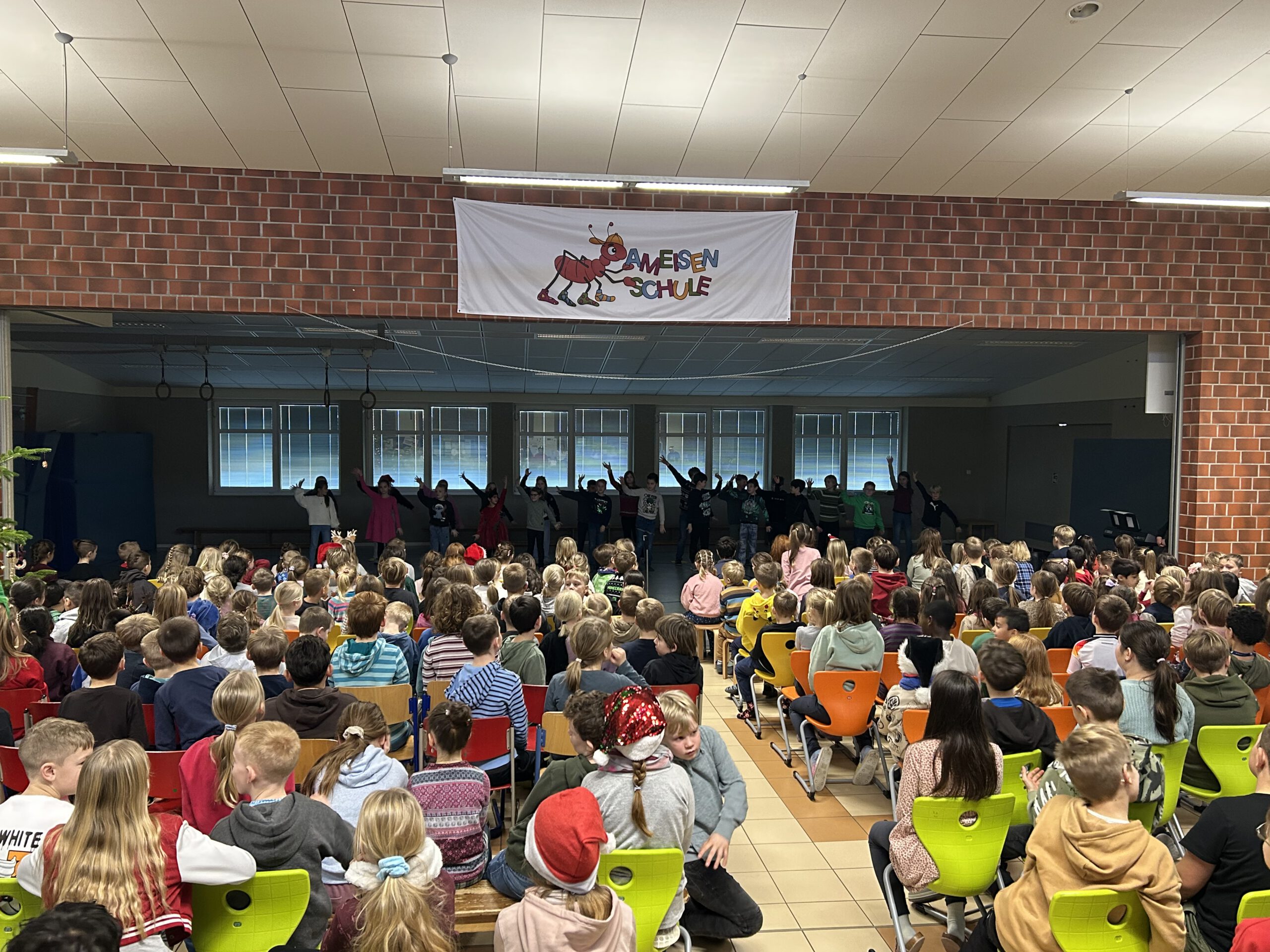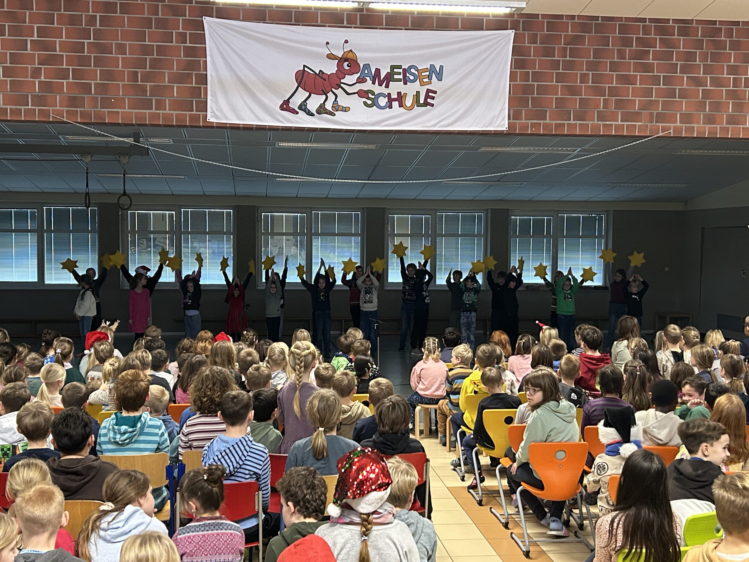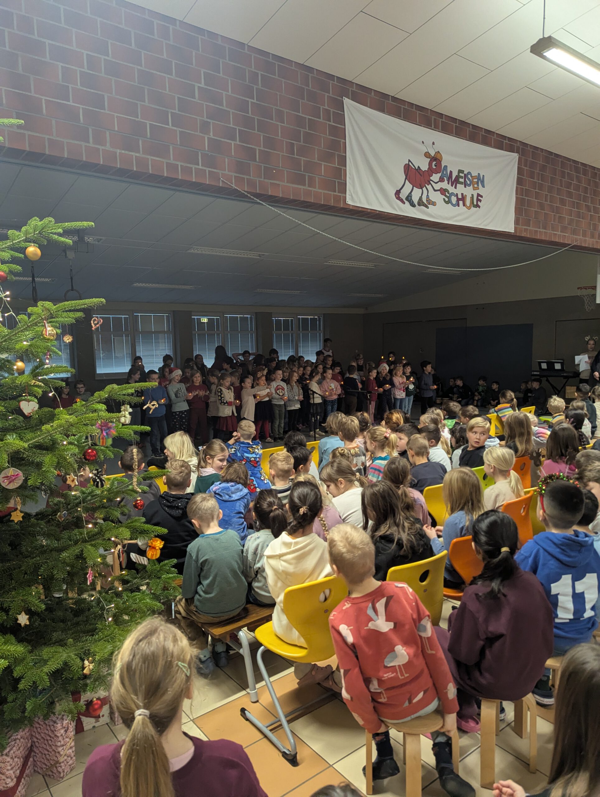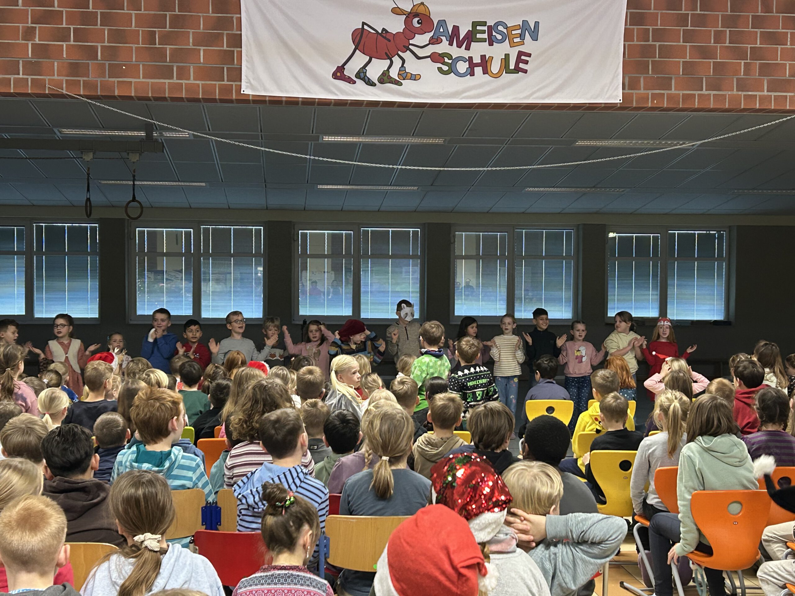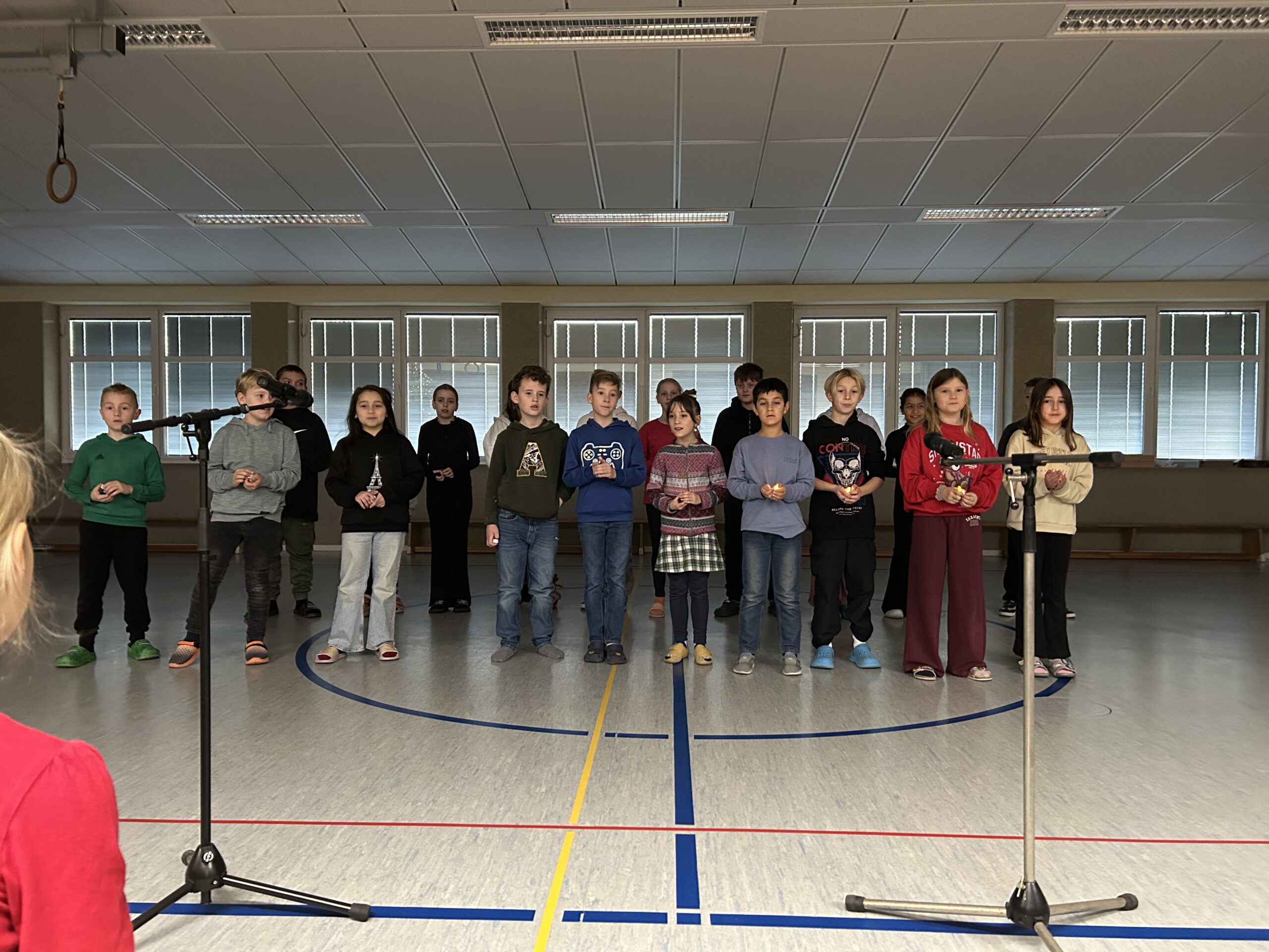 In unserer Grundschule fand zum Abschluss des Jahres eine stimmungsvolle Weihnachtsfeier statt. Alle Klassen hatten sich mit viel Engagement vorbereitet: Gedichte, Lieder und tänzerische Darbietungen sorgten für eine festliche Atmosphäre und zauberten Kindern wie Erwachsenen ein Lächeln ins Gesicht. Nach den Vorführungen ging der Tag in den Klassen  in ruhigem und besinnlichem Rahmen zu Ende.