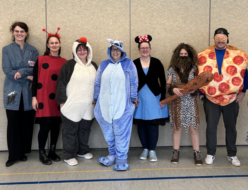 Alle standen heute mit einem Lächeln auf den Lippen da: bunt verkleidet und bestens gelaunt starteten die Schülerinnen und Schüler sowie das Lehrerkollegium den Rosenmontag mit einer fröhlichen Polonaise durch das Schulgebäude. Die kreative Vielfalt der Kostüme konnte von allen bewundert werden, während der Schulflur in ein lebendiges Karnevalsfeld verwandelt wurde.
