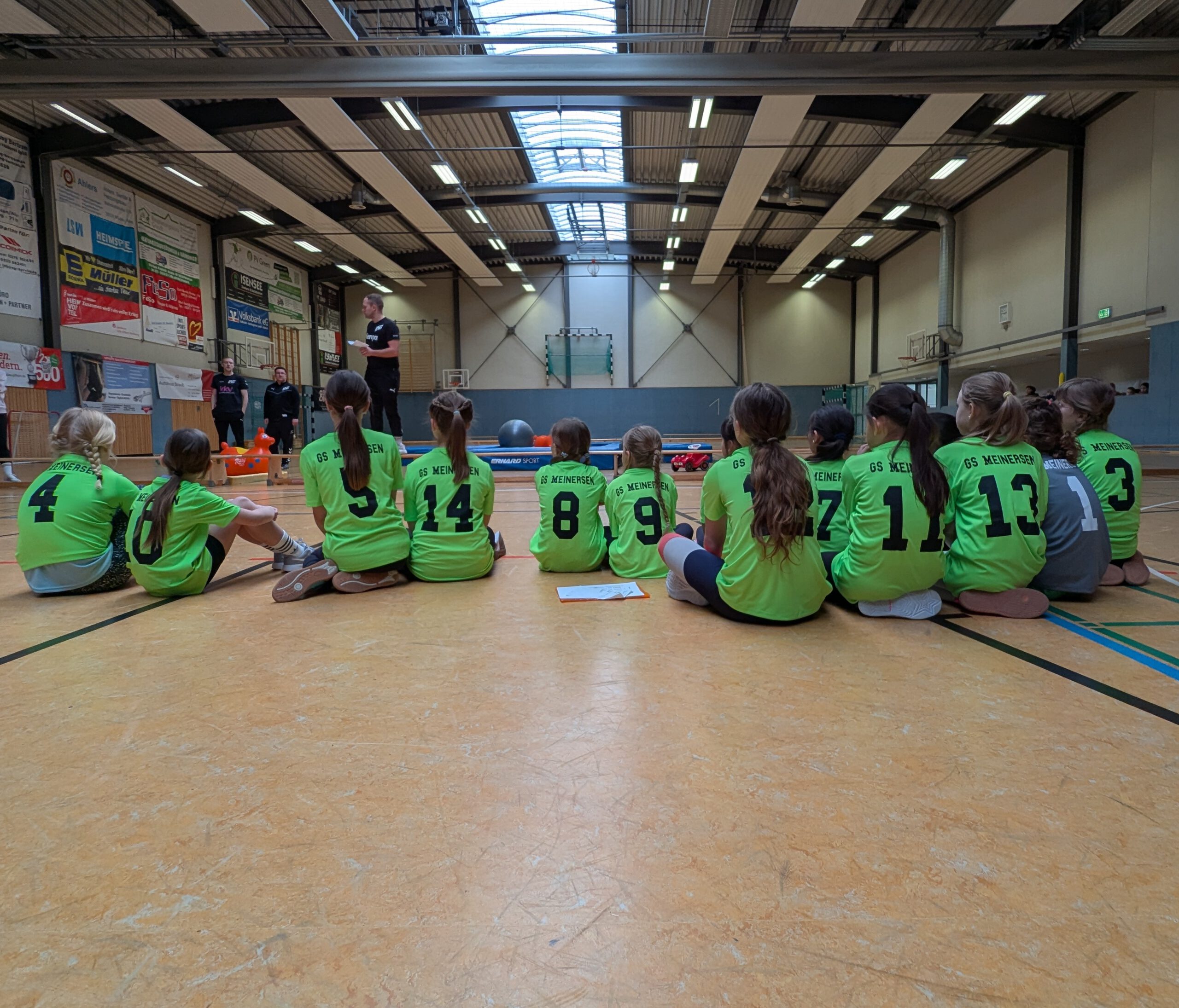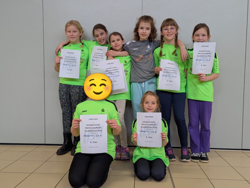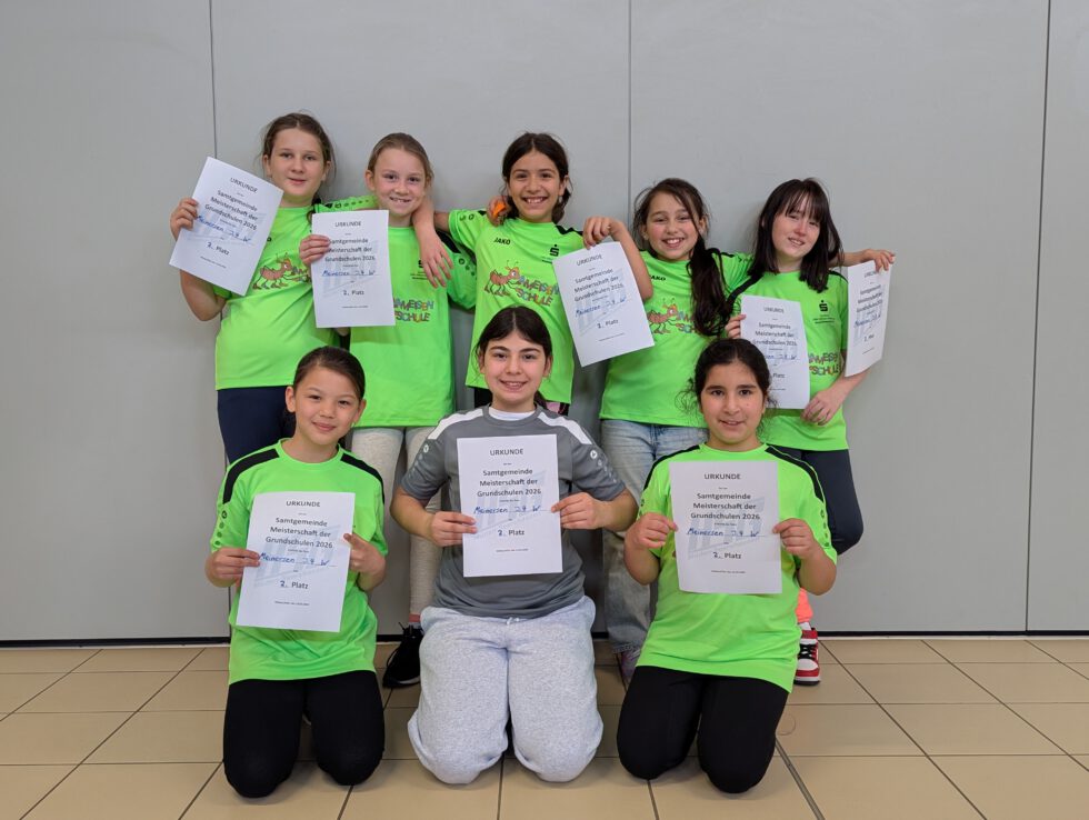 Am 13.03.2026 war es wieder soweit. Acht Mädchen aus Jahrgang 3 und acht Mädchen aus Jahrgang 4 haben ihr Können beim Grundschulhandballturnier gezeigt. Beim Turnier traten die Grundschulen Müden, Hillerse, Leiferde und Meinersen gegeneinander an. Es waren sehr spannende Spiele. Die Mädchen aus Jahrgang 3 erreichten den 4. Platz und die Mädchen aus Jahrgang 4 erreichten den 2. Platz. Alle haben ihr bestes gegeben und hatten viel Spaß und einen tollen Tag. Wir danken der HSG Müden-Seershausen, dass sie dieses Turnier jedes Jahr plant und durchführt. Ein besonderes Highlight war es, dass wir die neuen Ameisentrikots zum allerersten Mal tragen durften. Vielen Dank an den Förderverein und die Sparkasse Celle-Gifhorn-Wolfsburg. Wir freuen uns schon auf das nächste Handballturnier.